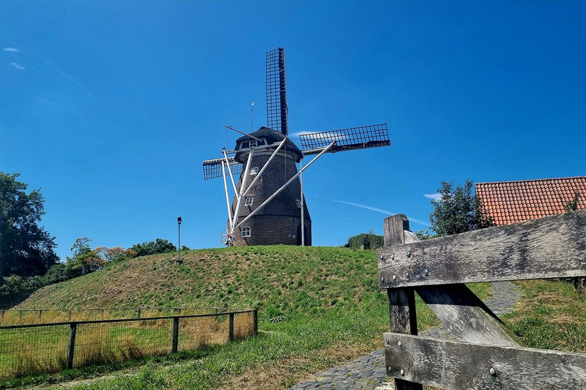 Geniet van de leuke paadjes en blijf de oranje pijlen (ook stukje verharde weg) volgen tot aan de molen. In 1821 liet Heer van Herinckhave de windmolen bouwen, omdat de watermolen bij zijn kasteel onvoldoende water kreeg om te kunnen malen. In 1844 brandde de houten molen geheel af.