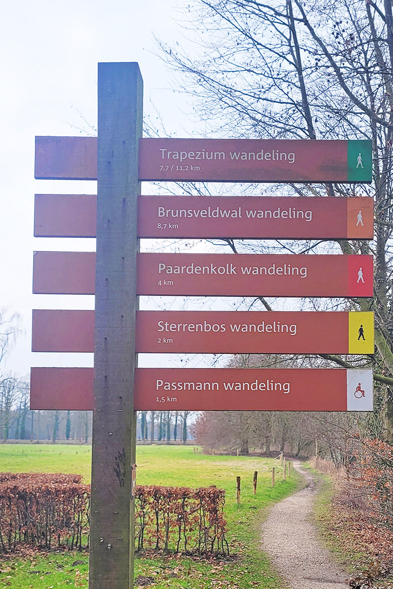 Voor dit artikel heb ik de Trapeziumwandelroute van 11,2 km gewandeld. Deze route is tevens in te korten tot respectievelijk 7,7 of 5 km. De ronde is bewegwijzerd met groene pijlen. Via de website van Staatsbosbeheer is informatie over de route in te zien. Een groot deel van de route is losloopgebied voor honden, iets om bewust van te zijn.