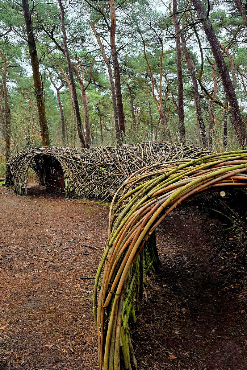 Aan het begin van de route passeer je een speelbos waar kinderen zich kunnen uitleven. De natuurlijke speelelementen, opgebouwd uit wilgentakken, zijn gemaakt door kunstenaar Will Beckers. Leuke hutten waar de kinderen doorheen kunnen lopen. Het is een fijne onderbreking voor de jonge wandelaars.
