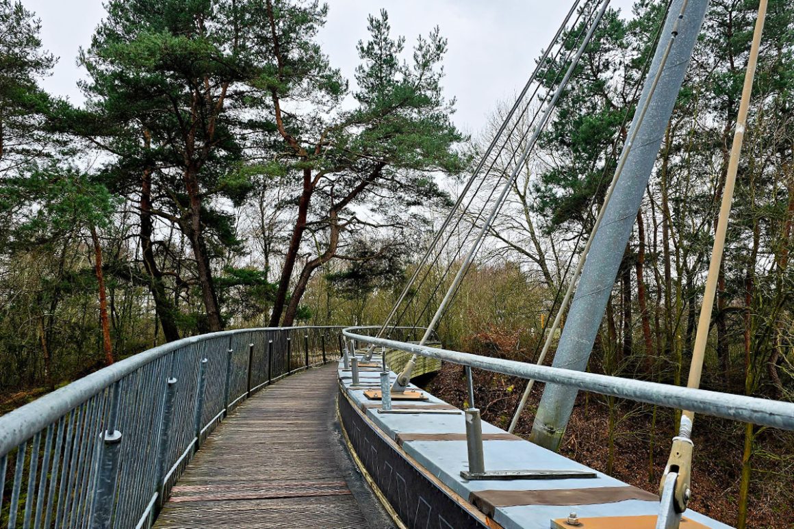 Startend bij ‘De Souverein’ volg je eerst de aanlooproute naar het begin van de wandeling; daarna volg je de palen met de oranje cirkel. Onderweg passeer je een avontuurlijk speelbos en kom je langs ‘De Reus van Bosland’, een 30 meter hoge uitkijktoren. Deze kan tijdens ons bezoek helaas niet beklommen worden omdat hij niet veilig genoeg is. De kabelbaan ernaast maakt gelukkig weer veel goed voor de kinderen.
