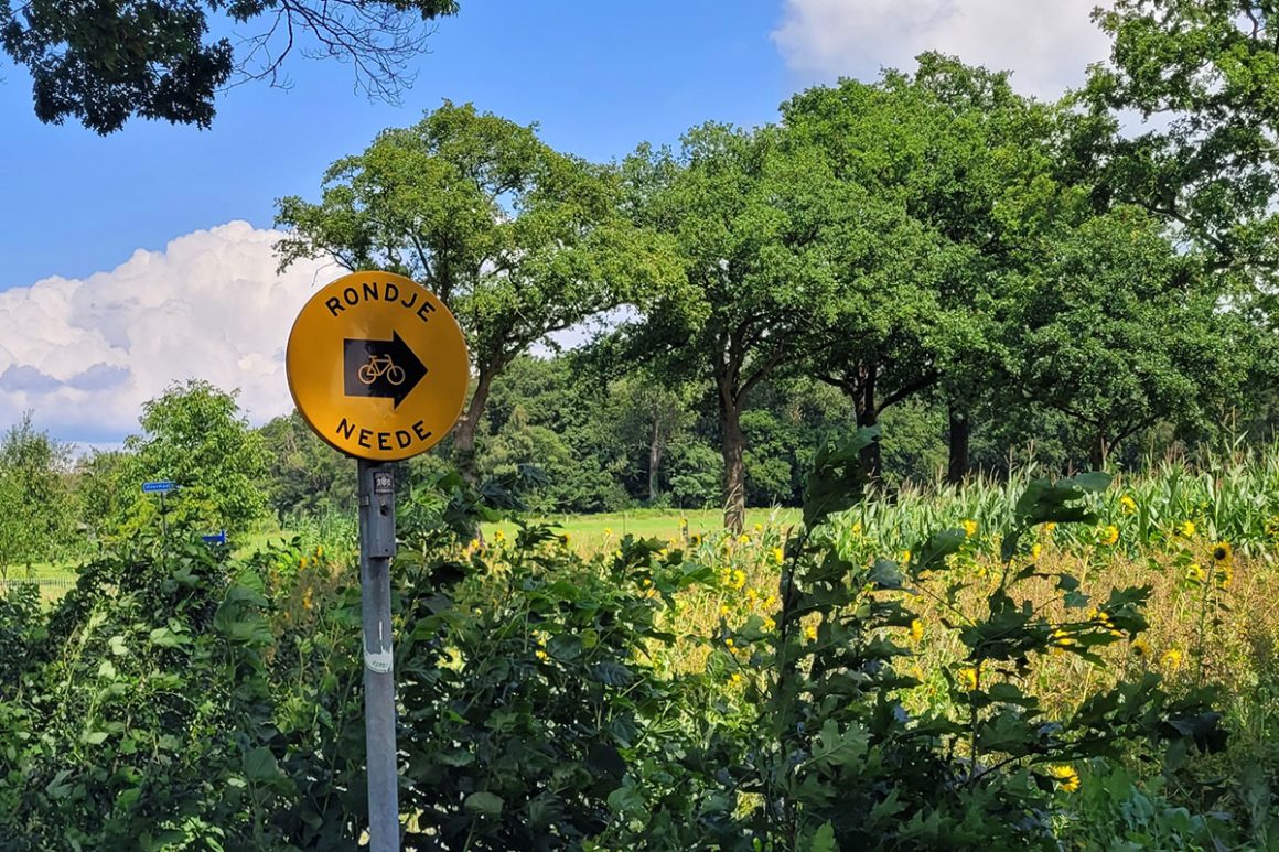Wil je liever fietsen dan wandelen, dan biedt de website en app van de Achterhoek ook diverse routes in verschillende afstanden door en rondom Neede en de omliggende dorpen. Een route die ik er uit pik is het Rondje Neede van 32,6 km, weergegeven met een geel rond bordje met vermelding Rondje Neede. Deze route vanuit het centrum van het dorp (VVV Neede) of TOP de Olde Mölle voert door het mooie coulisselandschap, het omliggende dorpje Rietmolen, langs het Needse Achterveld, rondom het Noordijkerveld en de Needse Berg.