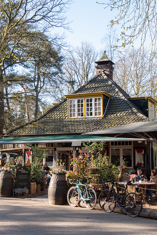 Vroeger kwamen hier bussen vol dagjestoeristen die genoten van de omgeving en een Brabantse koffietafel. Tegenwoordig is het bezoekerscentrum van Natuurmonumenten er gevestigd. Voor een hapje en een drankje kun je in de zomer neerploffen op het grote terras met de kleurige kussens. ’s Winters is de knuffelmuur binnen in het restaurant een aanrader: je kunt er heerlijk je rug aan warmen.