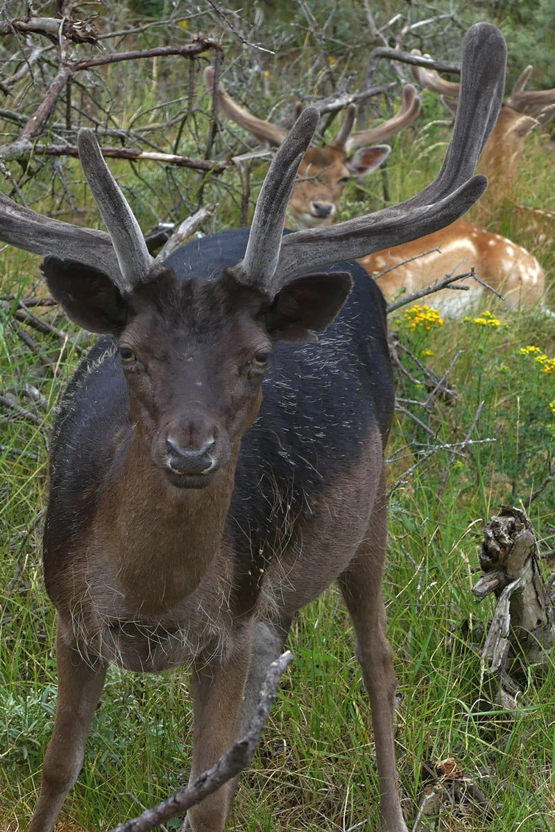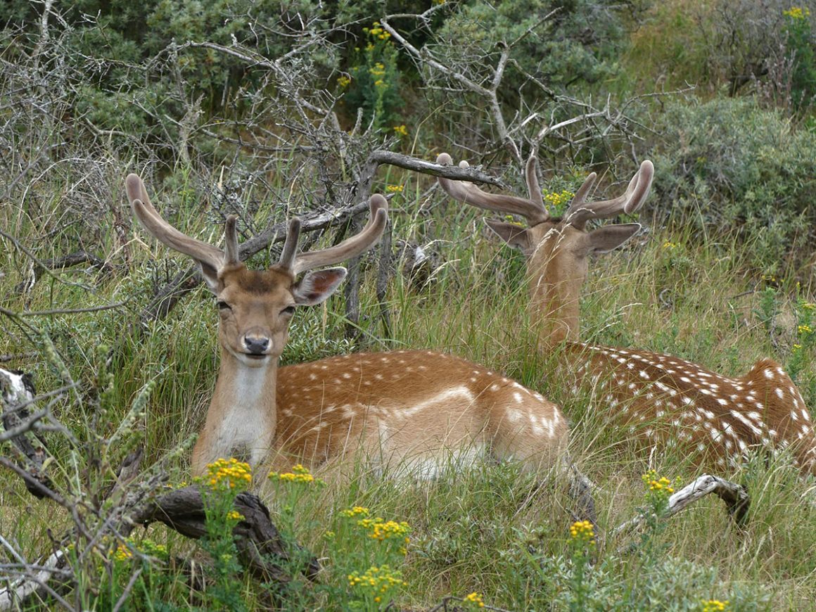 Het gebied staat vooral bekend om de grote populatie damherten die hier voorkomt. Circa 3.000 damherten hebben hun leefgebied hier. Door een groot aantal aanrijdingen op de wegen rond het gebied heeft men de duinen omrasterd. Tevens zijn er plannen voor een ecoduct, om het park te verbinden met aangrenzende natuurgebieden. Als we starten met onze wandeling komen we snel al verschillende herten tegen. De meesten liggen lekker lui in het gras.