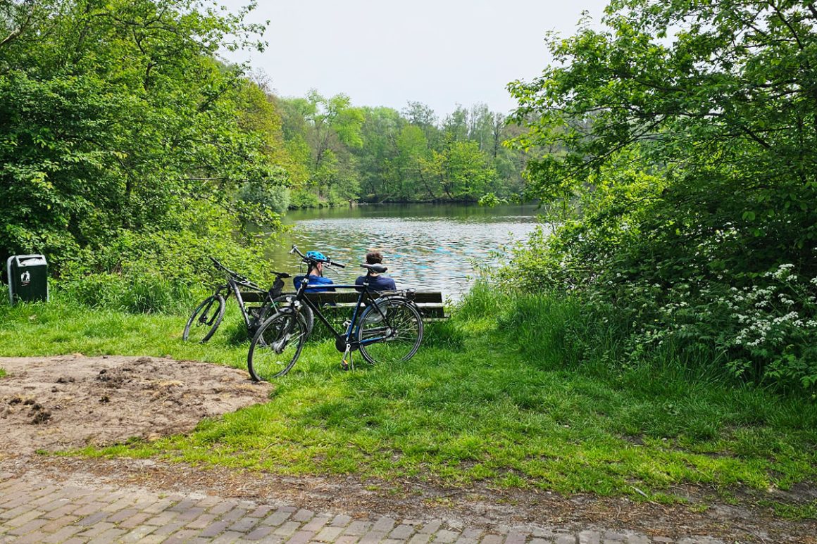 We steken een breder pad over om nog dieper het bos af te dalen. Aan het einde van het pad rechts langs de Lonnekermeren. Op het kruispunt gaan we rechts om daarna het tweede pad links te gaan.