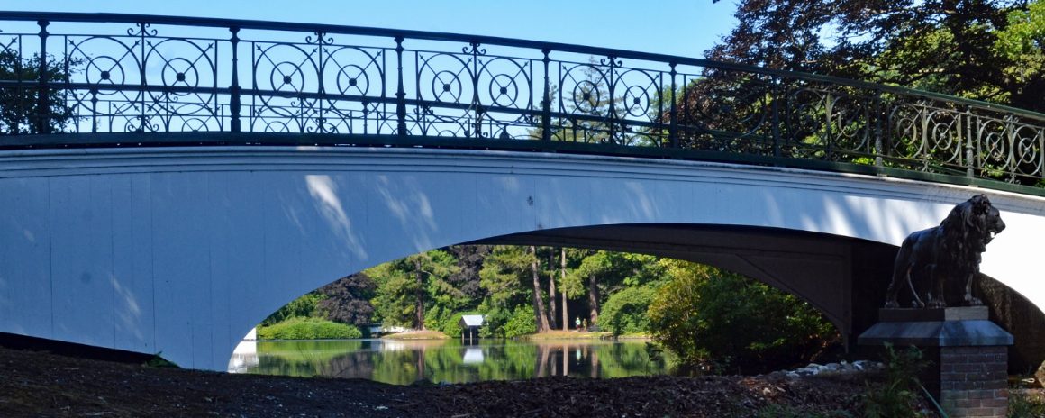 De wandeling voert je verder over de Leeuwenbrug, aangelegd toen Willem I Koning der Nederlanden was en werd later verfraaid met leeuwen van ‘Het Oude Loo’. Je bekijkt het meer nu vanaf de andere kant en nadert het boothuisje. Wie zit daar? Is dat Koningin Wilhelmina op dat bankje in de schaduw, met notitieboek en pen in haar hand? Dat klopt, zij schrijft haar memoires: ‘Eenzaam maar niet alleen’.