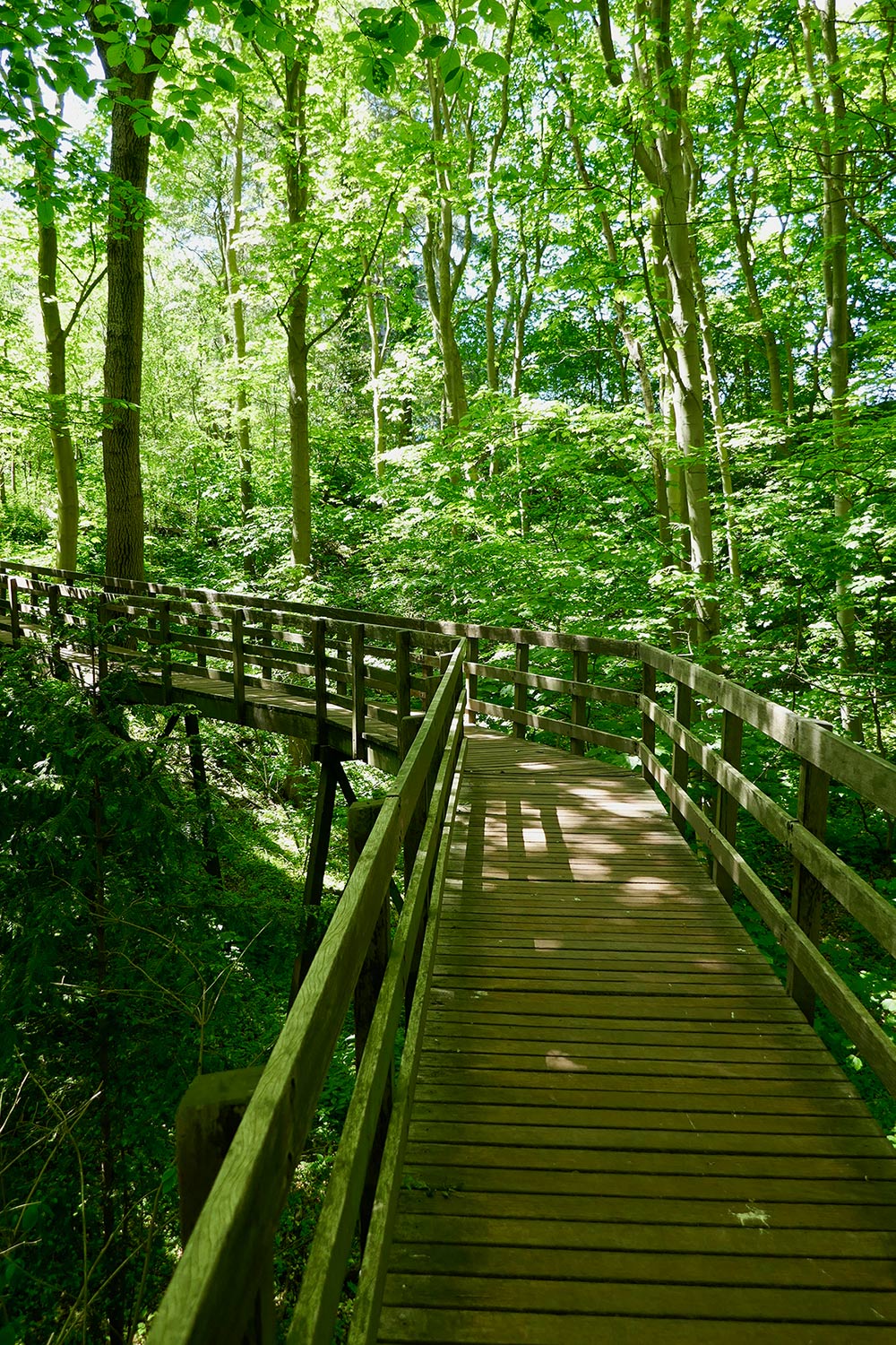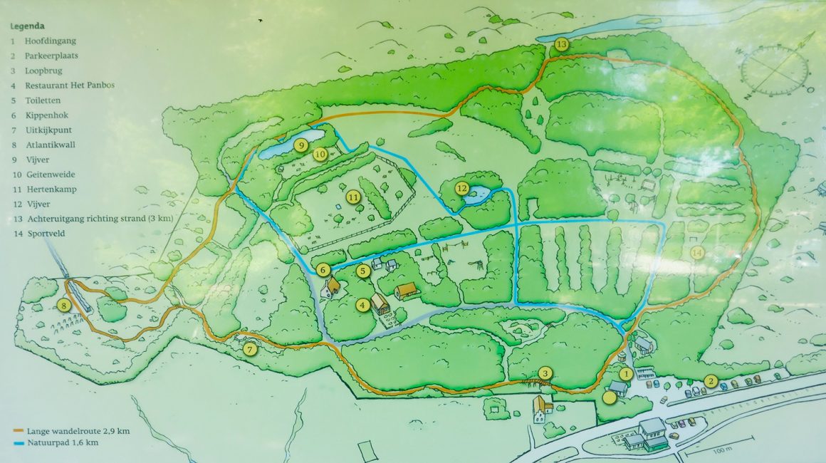 De blauwe route (1,6 kilometer) blijft meer in het middengebied van het Panbos. Je kunt natuurlijk beide routes koppelen.