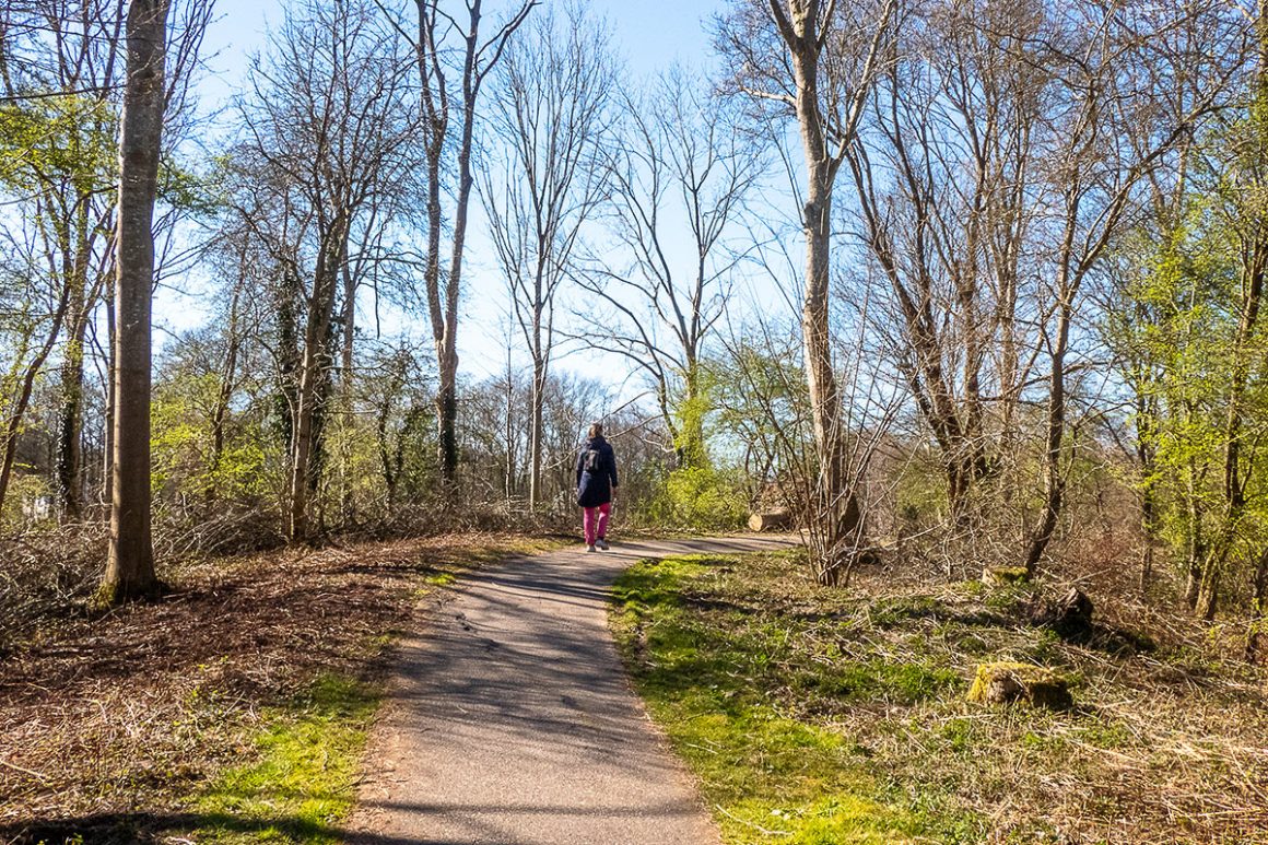 De wind begint toe te nemen, dus duiken we wat verder in onze sjaal. Meerweg is de afgelopen jaren gerenoveerd en ziet er weer goed uit. Bij de rotonde gaan we rechtsaf. Dit pad wordt ook gebruikt door fietsers en skaters. Het is een redelijk drukke weg, maar dat mag de pret niet drukken.