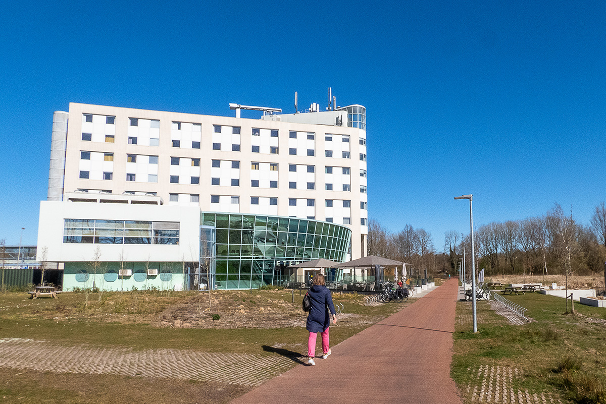 De wandeling zit er bijna op. We lopen verder langs het Hoornsemeer en komen uit bij een punt waar we rechtsaf gaan. Zo lopen we richting het parkje en wandelen we langs diezelfde houten brug waar we zijn begonnen en zien het restaurant Meerwold alweer liggen. Onderweg komen we nog het bekende en kleurrijke Wall House tegen.