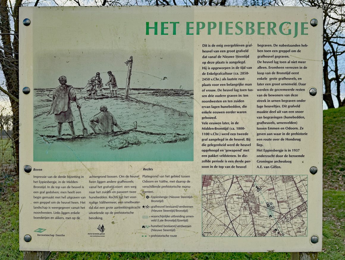 De wandeling is prachtig en vooral afwisselend. In het routeboekje lees je veel interessante weetjes over de historie in en om Odoorn. Al wandelend pak ik er een paar uit.