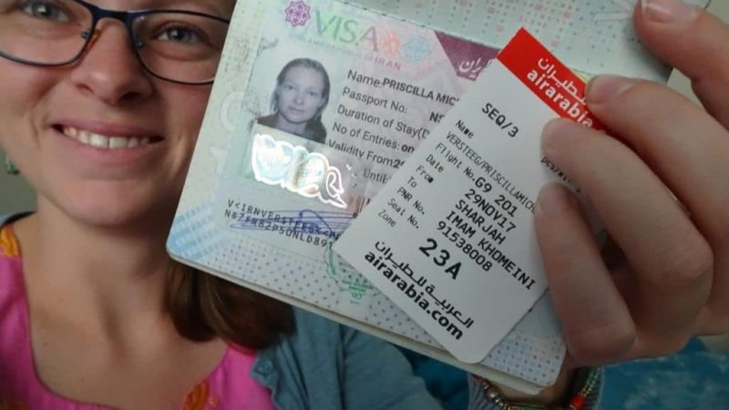 De vlucht duurt slechts anderhalf uur, maar voelt als een eeuwigheid. Wanneer we eindelijk landen herinnert Nasrin mij er vriendelijk aan om mijn haar te bedekken. Een wat onwennig gevoel wel. Na wisselende verhalen te hebben gelezen op het internet ben ik wat gespannen voor de immigratie. ‘Maak je geen zorgen!’ roept Nasrin. ‘Ik help je wel.’ Met z’n drieën lopen we richting de immigratie, waar Nasrin wat woorden wisselt met de officier. Behalve m’n paspoort, verzekeringsbewijs en E-visa bevestiging blijkt er niets nodig. Sterker nog, de officier stelde me geen enkele vraag en stempelde mijn paspoort zelfs zonder mijn gezicht gezien te hebben! Ook de controleurs vroegen niets. In plaats daarvan riepen ze veelvoudig ‘Welkom in Iran’ en ‘We wensen je een goede tijd.’