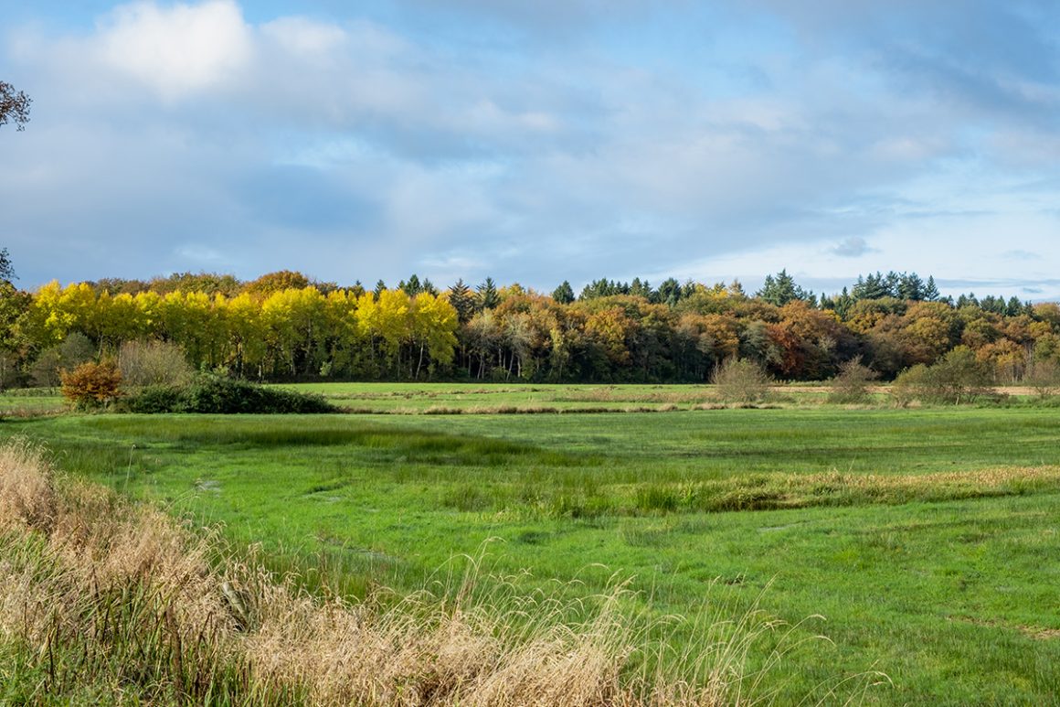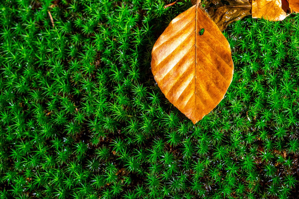 Dit jaar vallen de bladeren laat van de bomen. Dit zorgt ervoor dat we een palet aan kleuren te zien krijgen. Vandaag was de kleur geel overvloedig aanwezig en de zon doet er nog een schepje bovenop. Het contrast met de roestbruine bladeren, het frisgroene mos op de bodem van het bos en de donkergroene hulststruiken, is een waar kleurenparadijs. Af en toe steekt de wind op en voordat we het in de gaten hebben, lopen we in een regen van de gekleurde bladeren die alle kanten uit dwarrelen.