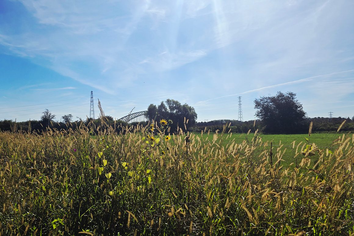 Via een camping loop je het klompenpad verder richting de Rosande-polder. Hier duik je de spoorbrug onder. Struinend langs weilanden met grazende koeien en langs het water geniet je van de vergezichten.