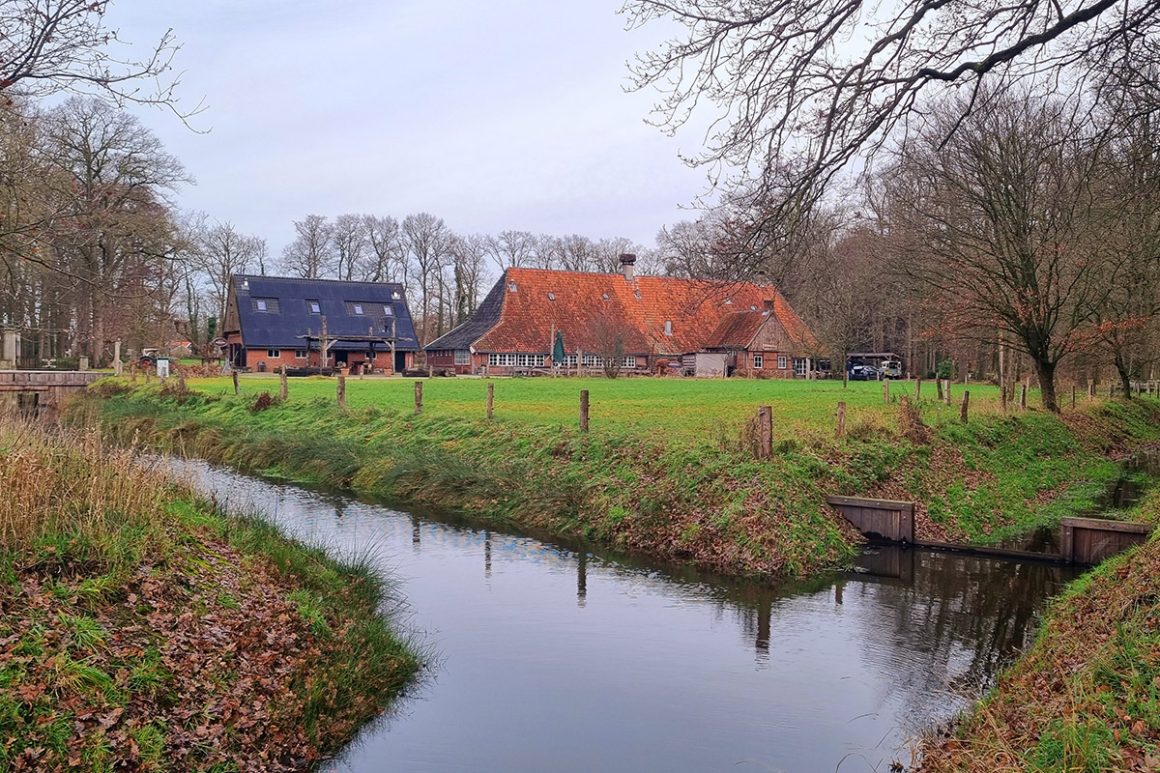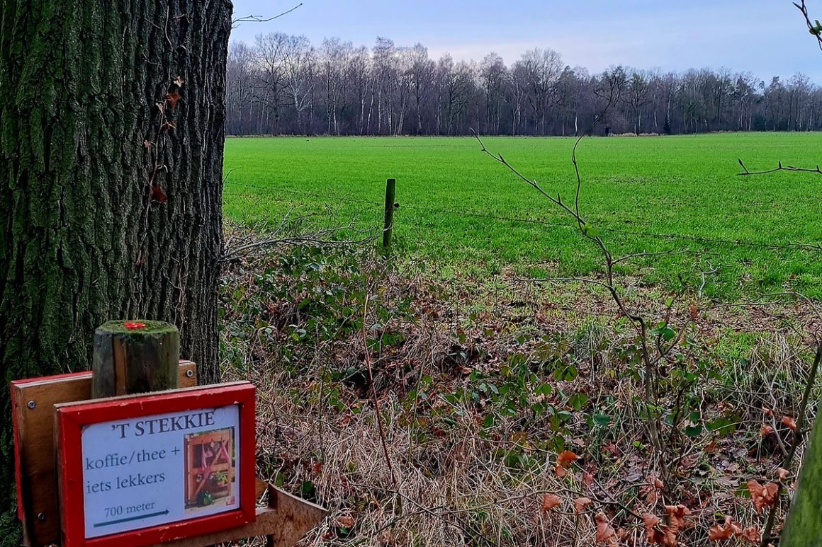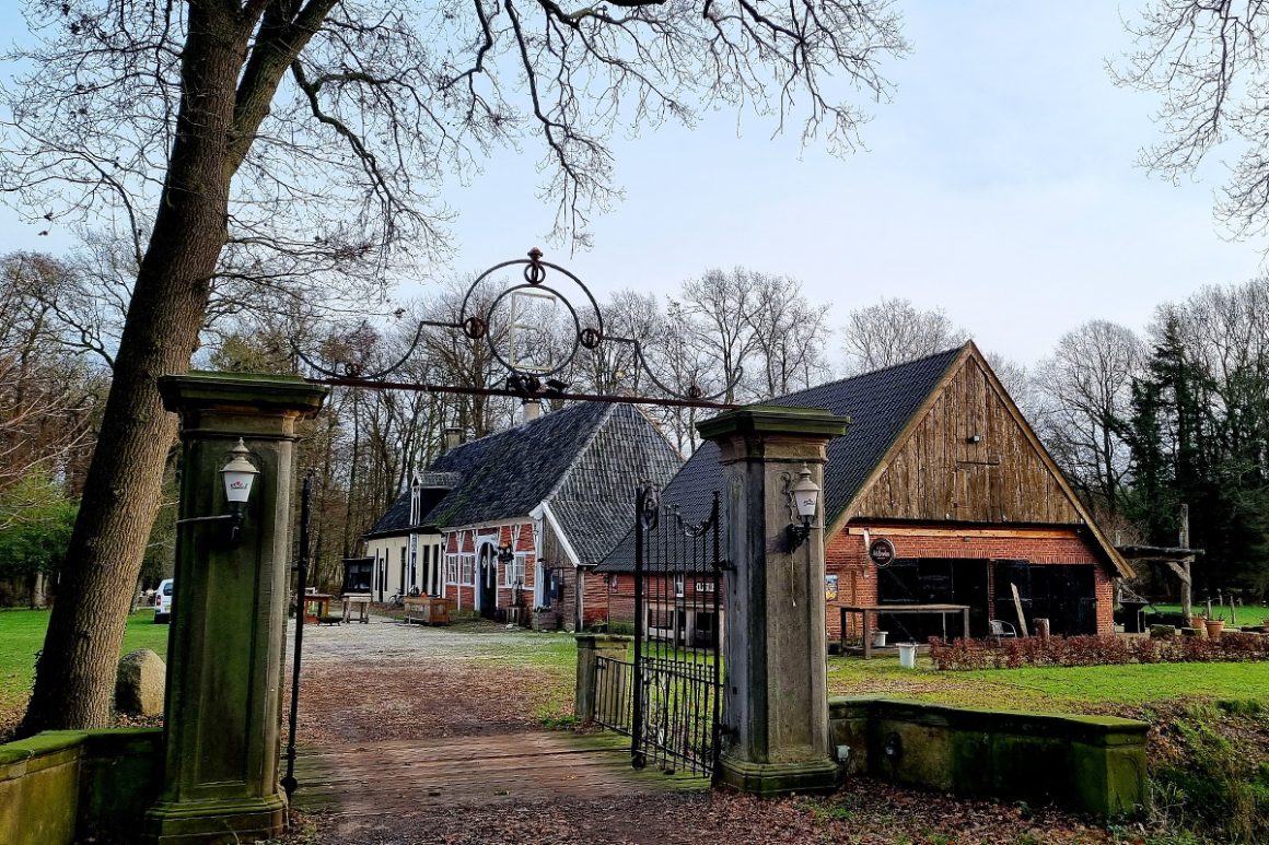 Over het met herfstbladeren bedekt pad lopen we het bos in en we zien al vrij snel het bordje naar ‘t Stekkie. Heb je na 10 minuten al zin in koffie? Twijfel dan niet deze afslag naar ’t Stekkie te nemen. Een koffie- en theehuisje op een van de mooiste plekjes van het Twentse platteland. Een oude boerenschuur, omgebouwd tot een prachtige, authentieke boerenkeuken. Bij mooi weer kun je buiten op het terras genieten, bij wat minder weer is het binnen bij de kachel gezellig warm. Bel altijd even van te voren of ze open zijn, om teleurstellingen te voorkomen. Wij besluiten deze stop voor later te bewaren.