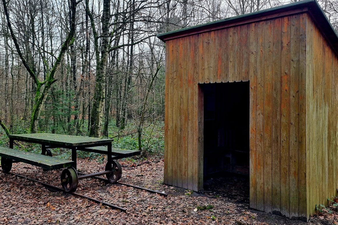 Vervolgens zien we vrij snel het replica van het wachthuisje dat 300 meter verderop stond langs de trambaan Oldenzaal naar Denekamp. De trambaan liep over het grondgebied van de familie Palthe. De familie bedong een eigen halte ‘Volthe’ en hiervan werd door de ‘Juffers Palthe’ gretig gebruik gemaakt.