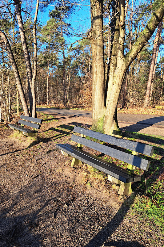 Na het passeren van de midgetgolfbaan, loop je het bos in. Dit verharde pad gaat al snel over in een zandpad. Na 150 meter sla je linksaf. Vanaf dit punt loop je een ronde. Direct vallen de indrukwekkende, metershoge loofbomen op. Door de hoogte van deze loofbomen ontstaan verre doorkijkjes. Wist je dat deze bomen in de Eerste Wereldoorlog door werkverschaffing aangeplant zijn?