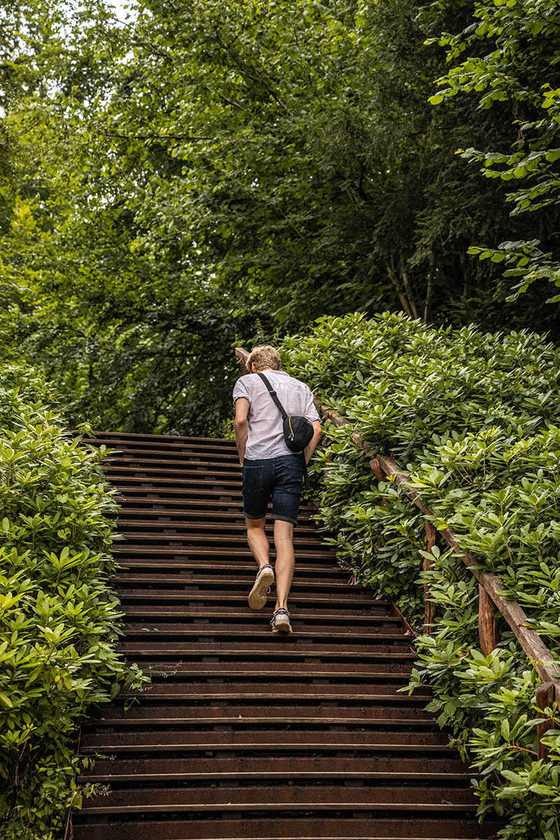 Als je verder loopt langs de tennisbaan loop je onder het oude poortgebouw door en kom je uit bij Stayokay, de oudste jeugdherberg van Nederland. Hier verblijf je op wel een heel bijzondere plek: midden in de natuur maar vlak bij de stad én in een landhuis (voormalig landhuis Rhijnauwen). Ernaast vind je het Koetshuis Café waar je kunt neerstrijken voor verschillende seizoensgerechten en lokale specialiteiten.