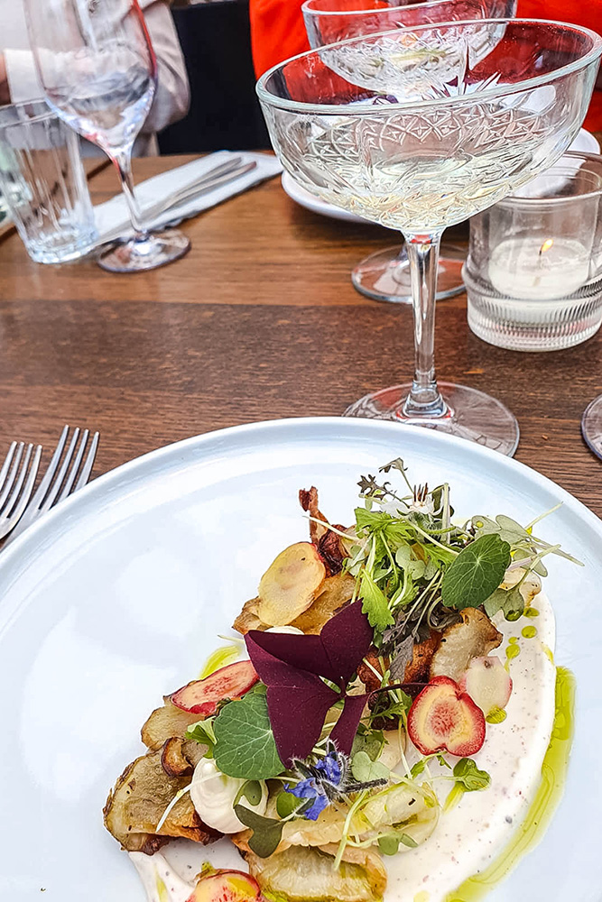 Inmiddels zijn we wel toe aan een drankje, dus strijken we neer bij de gezellige Veldkeuken. Hier eet je 100% biologisch, natuurlijk en lokaal. Daar betaal je logischerwijs wat meer voor, maar het eten en de huisgemaakte limonades zijn heerlijk en je zit hier prachtig aan het water.