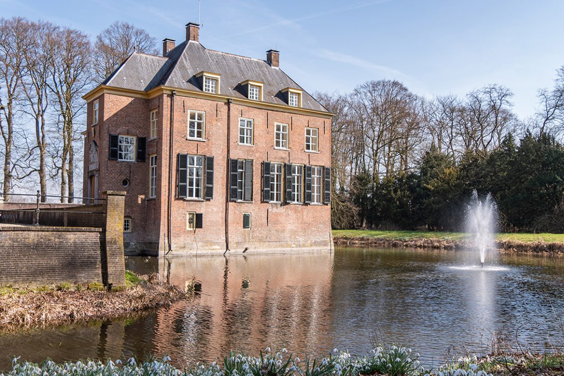 Ook dit kasteel mag je helaas alleen van de buitenkant bekijken. Voor een wit hek verlaat je de dijk en wandel je om het kasteel heen, door de parkachtige omgeving waar je weer uitkomt bij Het Stroomhuis.