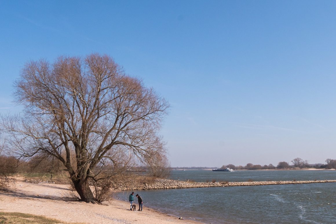 Een eind verder, bij een voormalig café, buigt de Waalbandijk naar links en ga je rechts naar beneden. Via een hek loop je het grasland van ‘De Rijswaard’ in en wandelend door de uiterwaarden bereik je de oevers van de Waal. Een heerlijk plekje om even uit te rusten en je lunchpakketje te verorberen. Daarna loop je verder, de rivier aan je linkerhand.