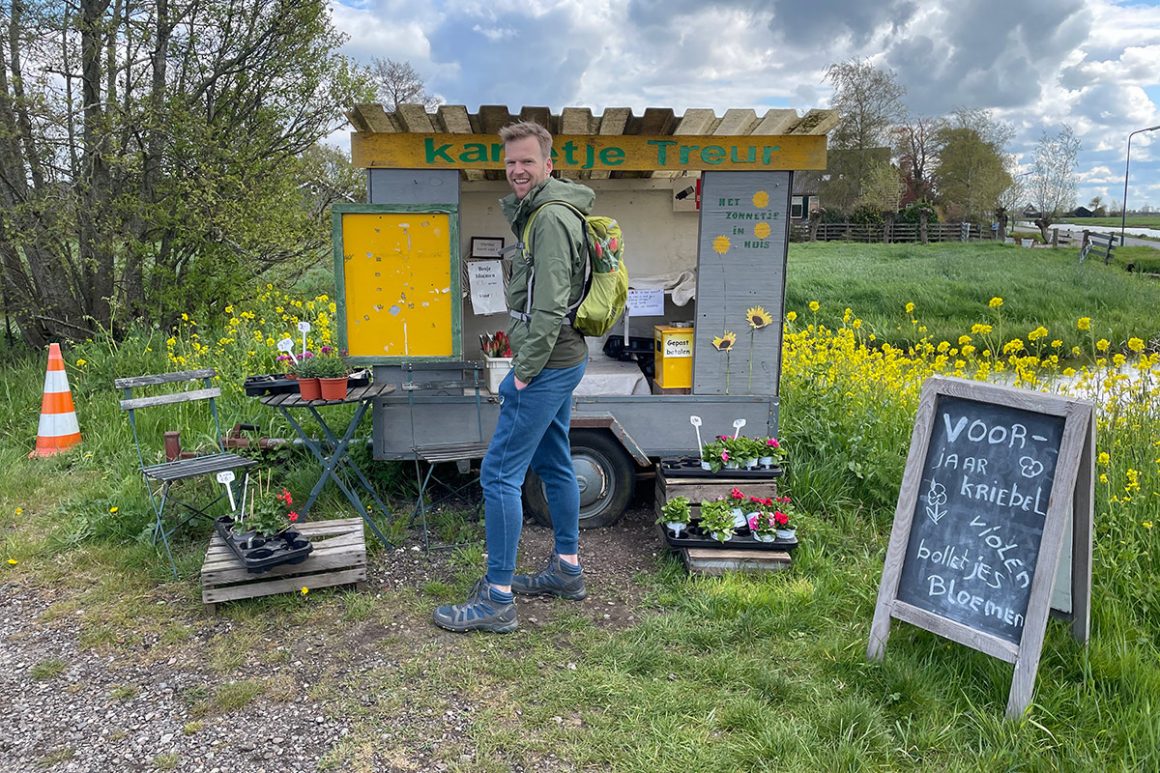 Langs deze weg vind je behalve een Rustpunt (waar je zelf een kop koffie of thee kunt maken) ook verschillende stalletjes waar de boeren in het seizoen tulpjes, bollen, groenten en fruit verkopen. Leuk om mee te nemen – als het in je rugzak past – of om na de wandeling even voor terug te rijden. Bij knooppunt 60 slaan we weer linksaf en zit de wandeling er alweer op: je ziet de uitkijktoren in de verte al liggen en loopt zo terug naar de parkeerplaats.