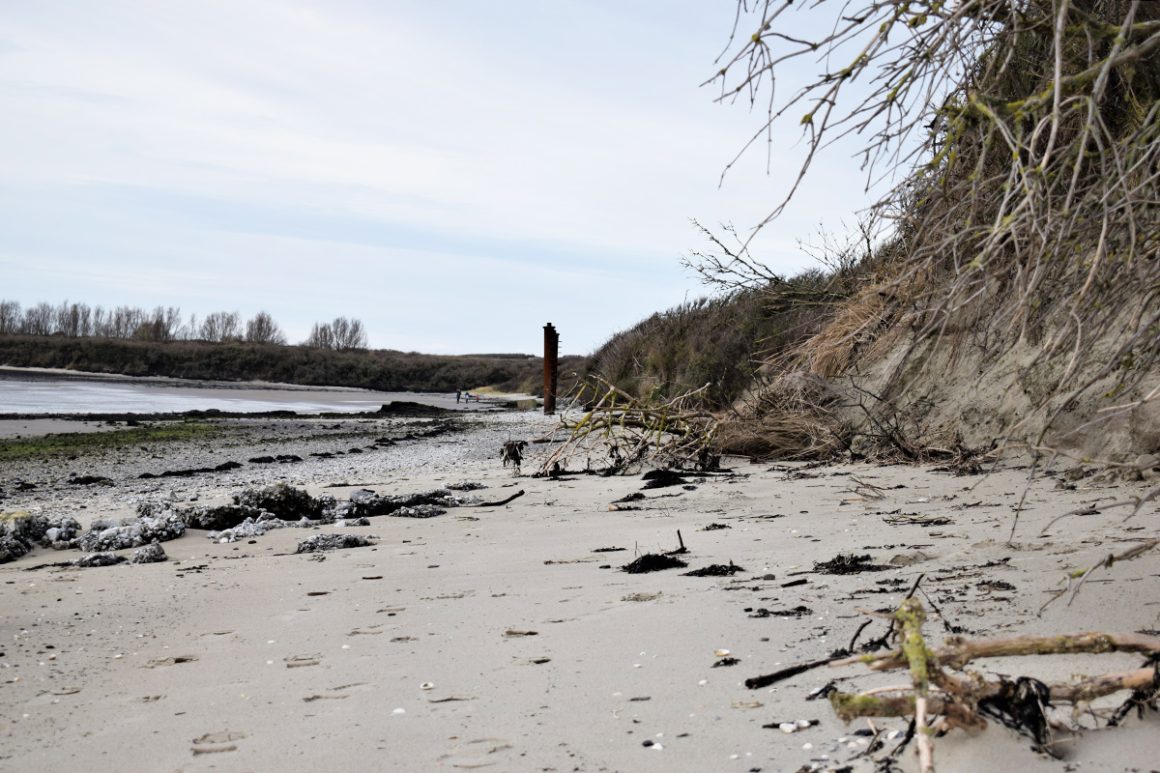 Een stuk van de wandeling loop je over het strand. Het is heerlijk rustig, er zijn geen andere wandelaars te zien. De kinderen genieten van al de schatten die te vinden zijn op het strand. De zilte Zeeuwse lucht in je gezicht en de wind door je haren, Nederland op zijn mooist.
