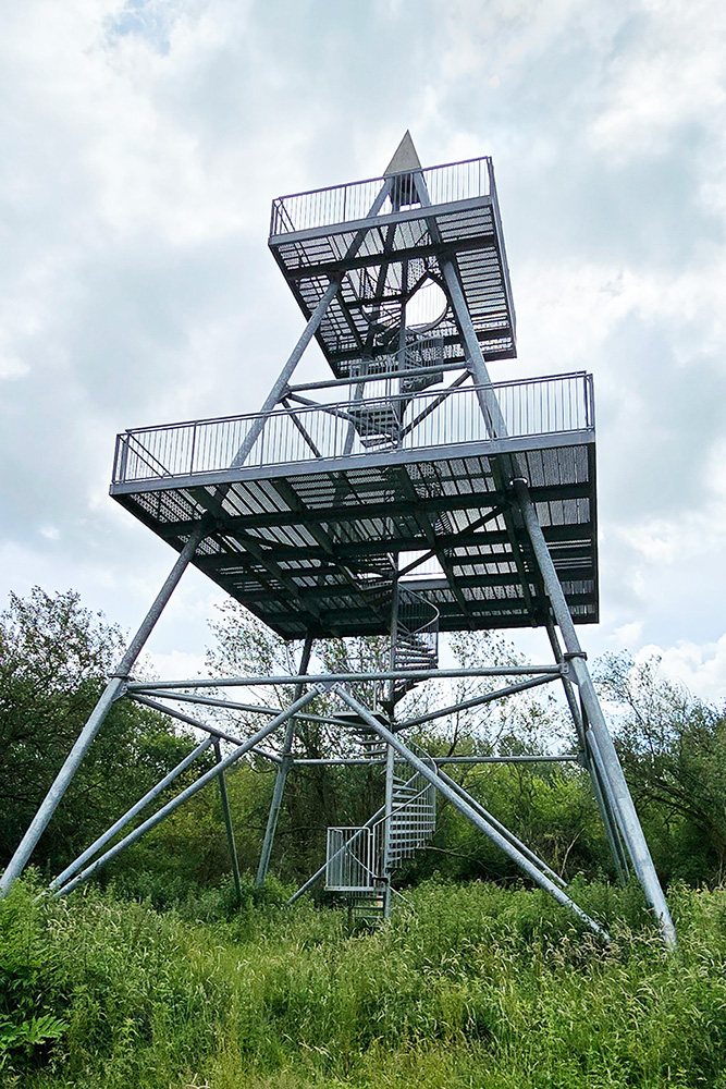 Deze uitkijktoren is een open toren volledig gemaakt van staal en heeft een piramidevorm. Via een smalle, stalen wenteltrap klim je naar de top waar je vanaf het uitkijkbordes in alle windrichtingen van het uitzicht kunt genieten. Eind 2021 is de toren verhoogd met 5 meter, waardoor het nu een hoogte van 19,5 meter heeft.