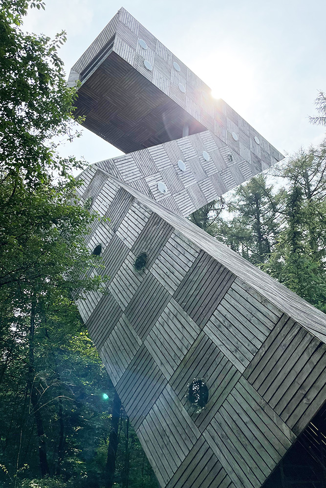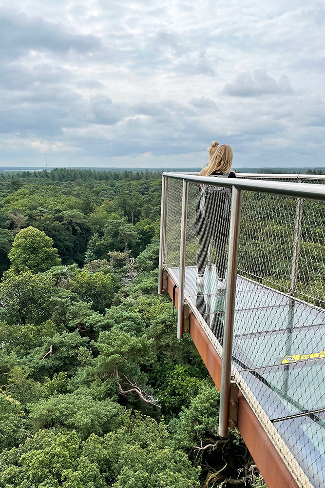 Vanaf de Bosbergtoren heb je een heel mooi uitzicht over het Nationaal Park Drents Friese Wold. Met een beetje geluk zie je bij helder weer zelfs de steden Groningen, Leeuwarden en Coevorden liggen. Eenmaal boven kun je niet alleen voor, naast en boven je kijken, maar ook naar beneden. Je kunt namelijk ook van het uitzicht genieten vanaf een aantal glazen uitkijkplatformen: de zogenoemde zijtakken van de dennenstam.